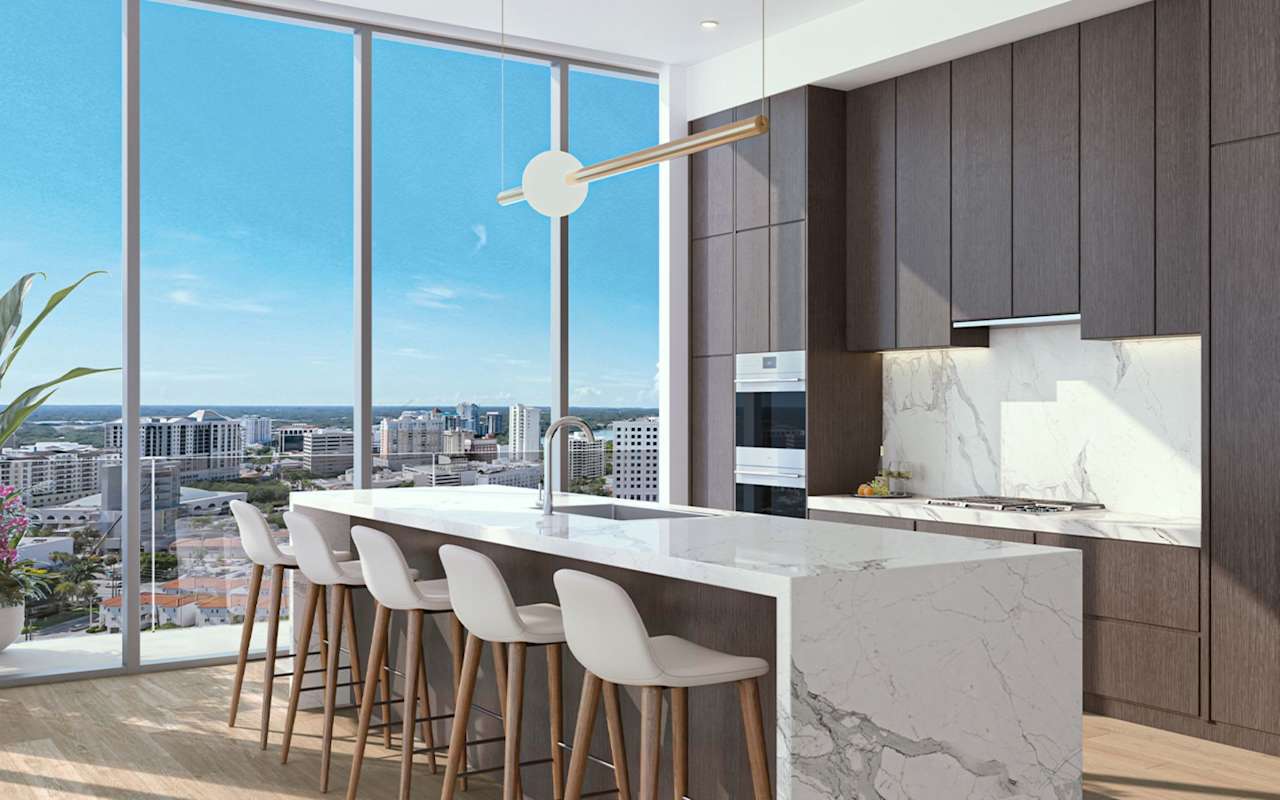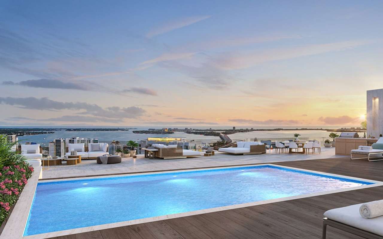 The highest residences in Sarasota, the One Park penthouse collection soars above the 53-acre park, giving panoramic views of the Gulf. These four exquisite, private residences feature grand entrances, expansive living spaces, and state-of-the-art finishes. Each penthouse has a massive private rooftop terrace featuring a private plunge pool, summer kitchen and multiple entertainment areas.